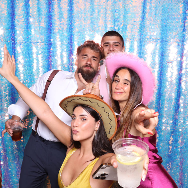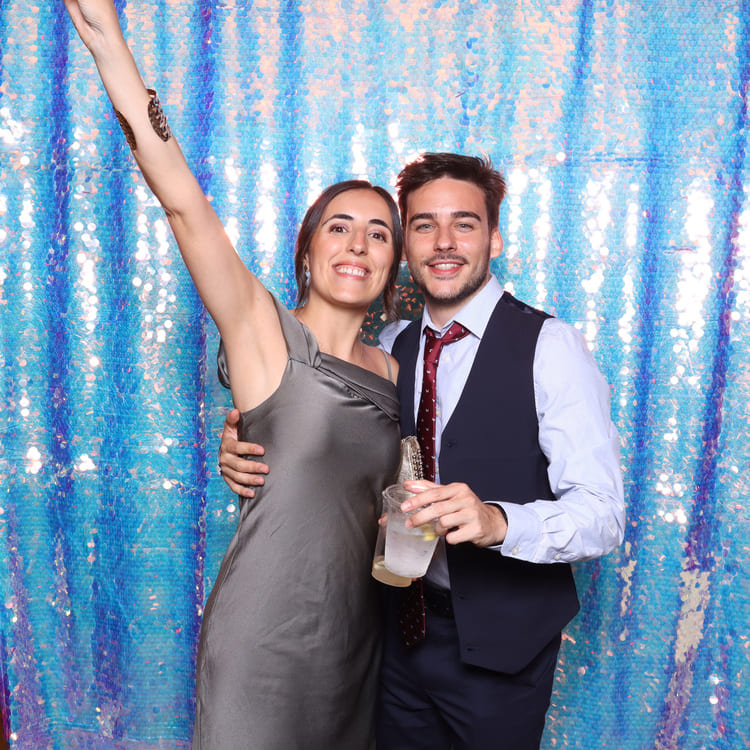 Para complementar la magia del momento, instalamos nuestro fotobooth en un rincón estratégico del salón de celebraciones:
